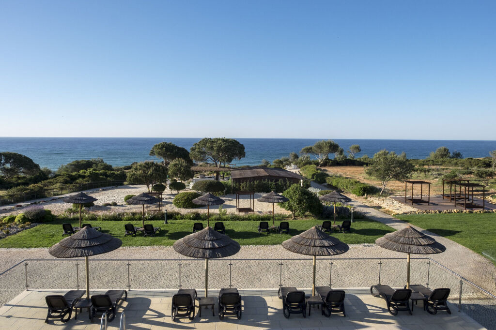 Les installations comprennent une piscine à débordement avec vue sur l'océan Atlantique, un jardin, un restaurant à la carte, un spa proposant des soins revitalisants, ainsi qu'un accès direct à la plage isolée d'Albandeira.