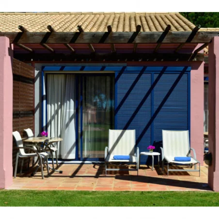 Suite Vila Sol : Plus luxueuse, elle offre une chambre avec lit King-size, un grand salon, une salle de bain équipée d’une baignoire et d’une douche, un minibar et une terrasse ou un balcon avec vue sur les jardins.