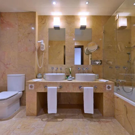 Suite Jardin : Répartie dans les jardins du complexe, elle comprend une chambre spacieuse avec un lit King-size, un salon séparé, une salle de bain moderne, un minibar et une terrasse privée avec accès direct aux jardins.