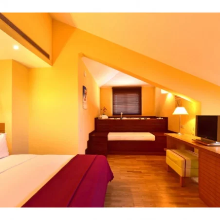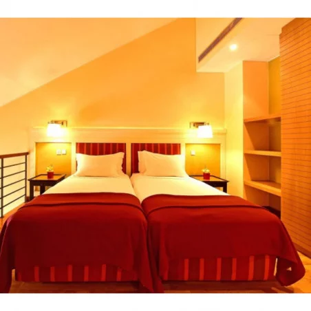 Les Suites Duplex, d’environ 40 m², sont réparties sur deux niveaux avec une mezzanine comprenant une chambre et un salon séparé au rez-de-chaussée. Elles incluent une kitchenette et un balcon avec vue sur les collines de Sintra ou les jardins.