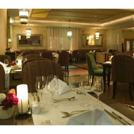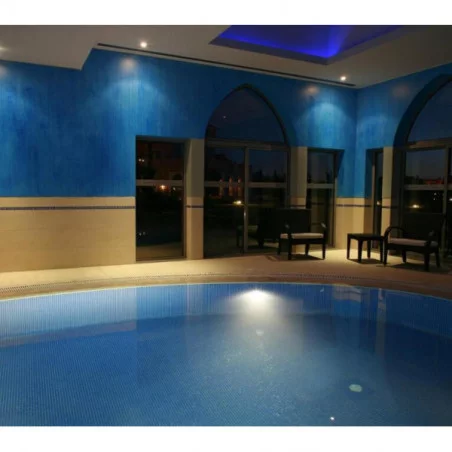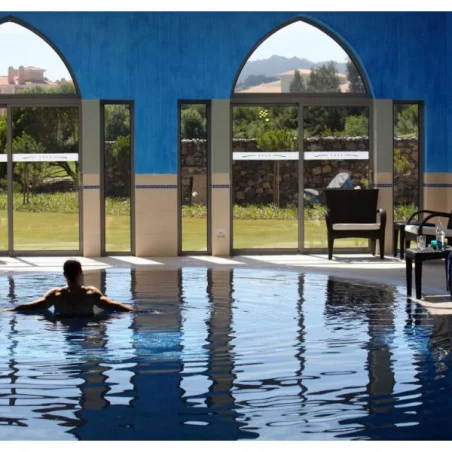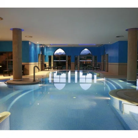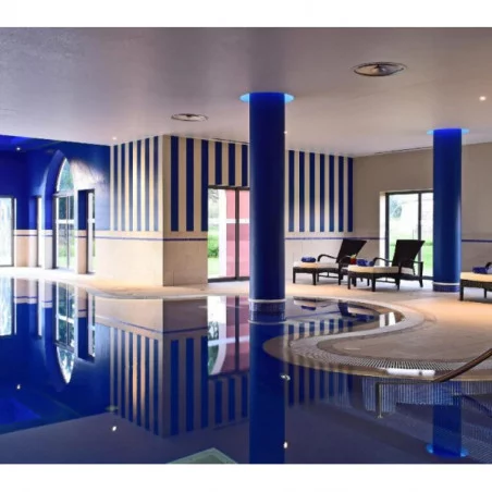 Bien-être : Spa avec sauna, piscine intérieure chauffée, bain turc et salle de sport. Deux piscines extérieures entourées de jardins luxuriants sont disponibles en été.