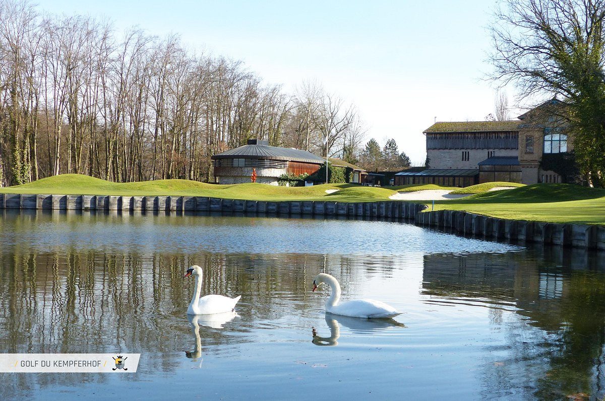 Le Golf du Kempferhof, situé à Plobsheim, à seulement 15 minutes de Strasbourg, est un parcours 18 trous (par 72) de 6 289 mètres, signé par le légendaire architecte Robert von Hagge. Classé parmi les plus beaux golfs d’Europe, il séduit par son design spectaculaire, son entretien irréprochable et son cadre d’exception entre forêts centenaires, plans d’eau et fairways ondulés.