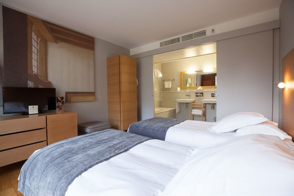 Le domaine abrite également un hôtel 4★, élégant et intimiste, avec chambres et suites décorées dans un style classique chic, certaines donnant directement sur le parcours. Le Pro-Shop, la location de matériel, les voitures électriques, et l’espace lounge viennent compléter une expérience d’exception.