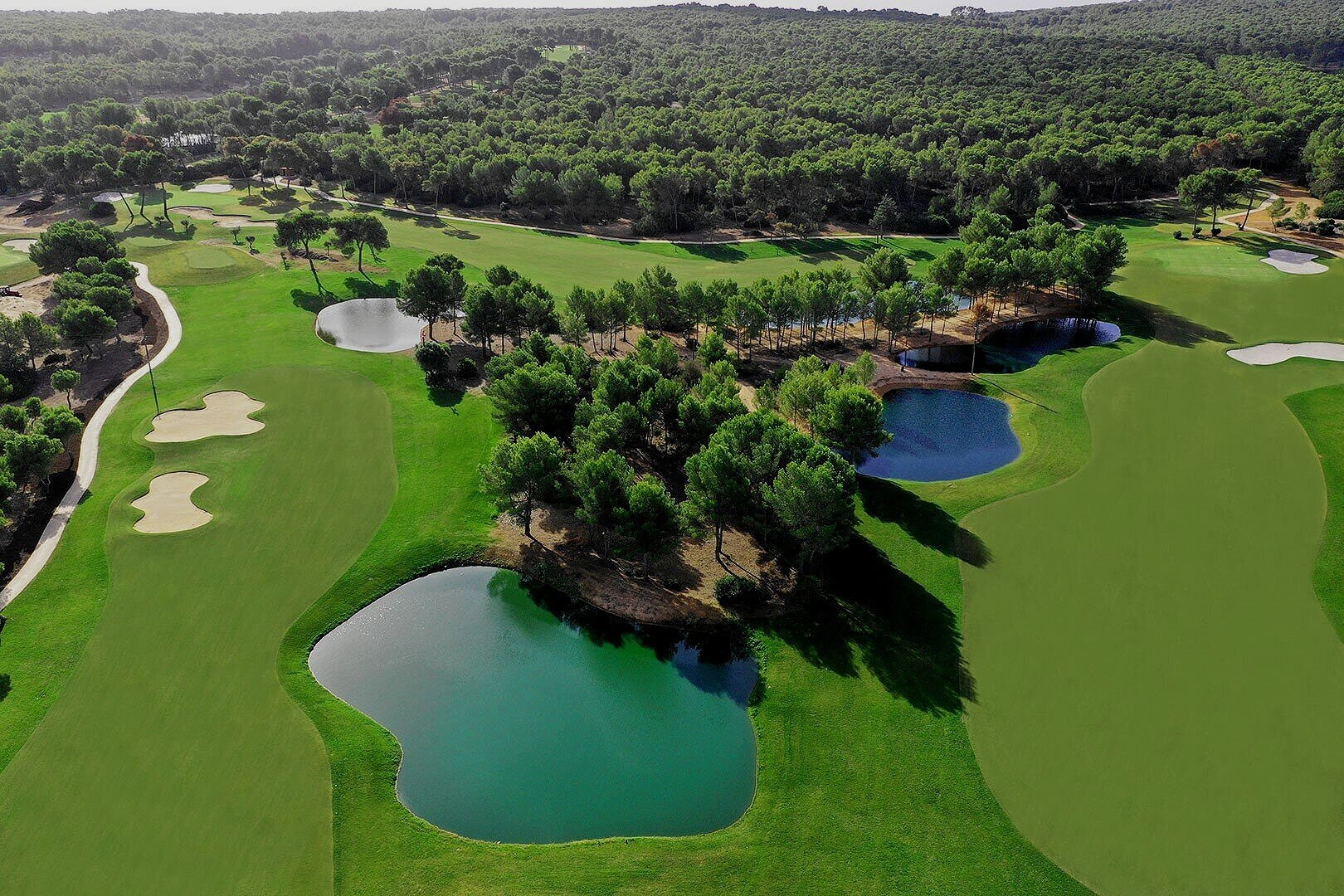 À seulement 12 kilomètres de Palma, avec ses larges fairways, ses greens généreux et ses 6 450 mètres de long, ce tracé offre un défi adapté à tous les niveaux de jeu. Majestueux pins, quinze lacs, bunkers stratégiquement répartis et les plus grands greens de l’île se combinent pour proposer une expérience de golf inoubliable. Les panoramas, notamment aux 8e et 16e trous, embrassent les collines et la mer, rappelant la beauté sauvage de Majorque.