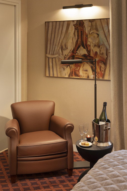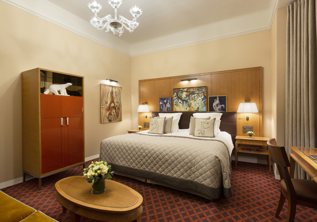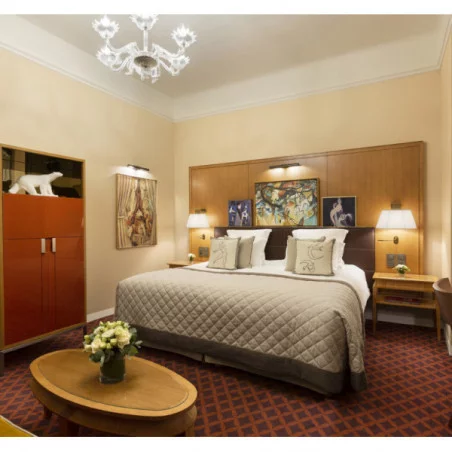 Chambre Deluxe : Plus spacieuse avec ses 30 m², elle propose également une vue sur le phare ou le Parc des Pins. Elle dispose d'un lit king-size, d'une salle de bains avec baignoire ou douche, d'un minibar et d'un coin salon.