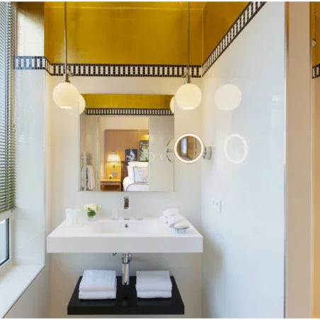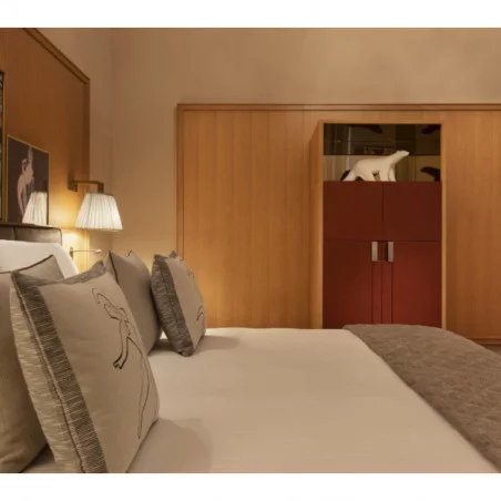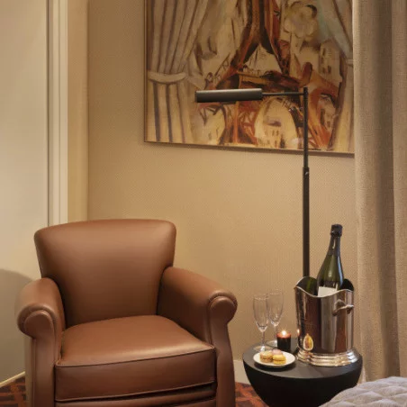La Suite : Unique en son genre, cette suite de 74 m² offre une vue panoramique sur le Parc des Pins. Elle comprend une chambre avec lit king-size, un vaste salon, un dressing, une salle de bains avec baignoire et douche à l'italienne, ainsi qu'une machine à café Nespresso.