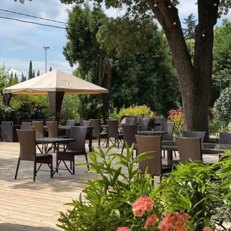 Route de Generac, Nimes - 30900 - Nîmes (30000) - Gard - Occitanie - FranceL’Hôtel Mas de Galoffre, situé à Nîmes en région Occitanie, est un établissement de charme offrant un cadre paisible avec piscine extérieure, espace bien-être et restaurant servant une cuisine locale. Il propose plusieurs types de chambres, allant de la chambre double standard à la suite junior familiale, adaptées aux couples, familles et groupes. L’hôtel dispose également d’un parking, d’un court de tennis et d’un service de location de vélos pour explorer les environs. Un lieu idéal pour un séjour alliant détente et découverte.