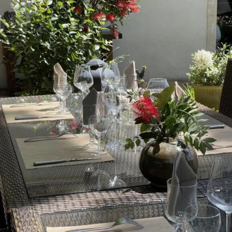 Le restaurant de l’hôtel sert une cuisine aux accents méditerranéens, mettant en avant des produits locaux et de saison. Les hôtes peuvent savourer leurs repas sur la terrasse ensoleillée ou dans la salle à manger au charme typiquement provençal.