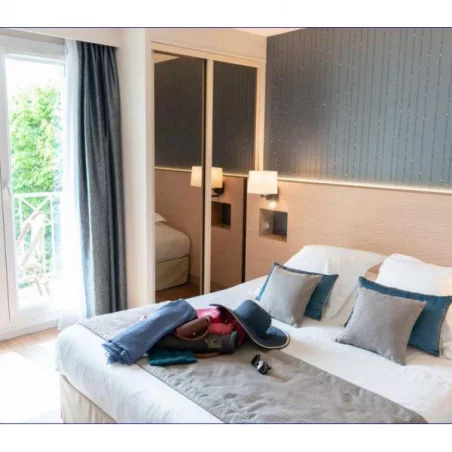 La Closerie Deauville est un hôtel de charme situé à Deauville, une destination prisée de la Côte Normande. Cet établissement 4 étoiles se distingue par son ambiance élégante et contemporaine, parfaitement intégrée dans le cadre chic et raffiné de cette station balnéaire. L'hôtel propose des chambres et suites spacieuses et modernes, avec des équipements haut de gamme pour garantir un confort optimal. Les chambres sont décorées dans des tons apaisants et disposent de tout le nécessaire pour un séjour agréable, incluant une literie de qualité, un minibar, une télévision à écran plat, un coffre-fort et une connexion Wi-Fi gratuite. Certaines chambres offrent même des vues sur les jardins ou la piscine extérieure.
