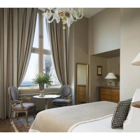 Les chambres supérieures sont plus spacieuses, avec des vues sur les jardins ou l’estuaire, offrant un coin salon ou bureau.