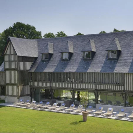 Chemin de l'Orgueil, Tourgeville - 14800 - Tourgeville (14800) - Calvados - Normandie - FranceLes Manoirs de Tourgéville est un hôtel de charme situé au cœur de la campagne normande, à quelques kilomètres de Deauville. Cet établissement 4 étoiles, niché dans un parc verdoyant de 7 hectares, offre un cadre paisible et raffiné, idéal pour se ressourcer ou profiter des nombreuses activités de la région. Composé de manoirs à colombages typiques de la Normandie, l'hôtel allie tradition et modernité, avec des prestations haut de gamme et une ambiance chaleureuse.