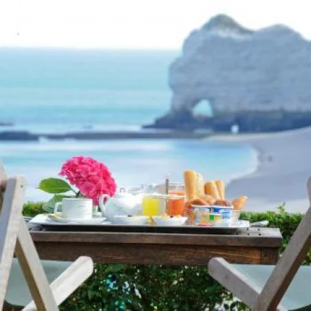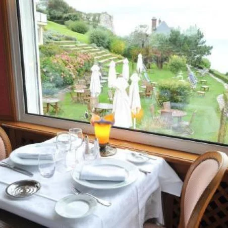 Route du Havre, Etretat - 76790 - Étretat (76790) - Normandie - FranceLe Dormy House est un hôtel 3 étoiles situé à Étretat, en Normandie, offrant une vue imprenable sur les célèbres falaises et la mer. Il propose des chambres élégantes et confortables, allant des chambres classiques avec vue sur le parc ou la mer, aux chambres supérieures avec une vue panoramique, ainsi que des suites luxueuses avec salon séparé et vue exceptionnelle.
