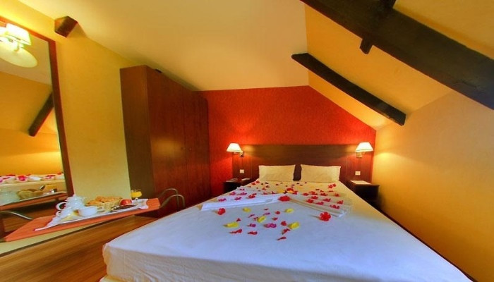 Chambre Deluxe : Ces chambres offrent plus d'espace et un décor raffiné avec des touches de luxe. Elles sont idéales pour les clients recherchant davantage de confort et d'intimité. Certaines chambres Deluxe bénéficient d'une vue sur les paysages environnants, offrant une atmosphère apaisante. Les équipements incluent un lit king-size, une salle de bain avec baignoire ou douche à l'italienne, des articles de toilette de luxe, télévision à écran plat, Wi-Fi gratuit, minibar, peignoir et chaussons, et climatisation.