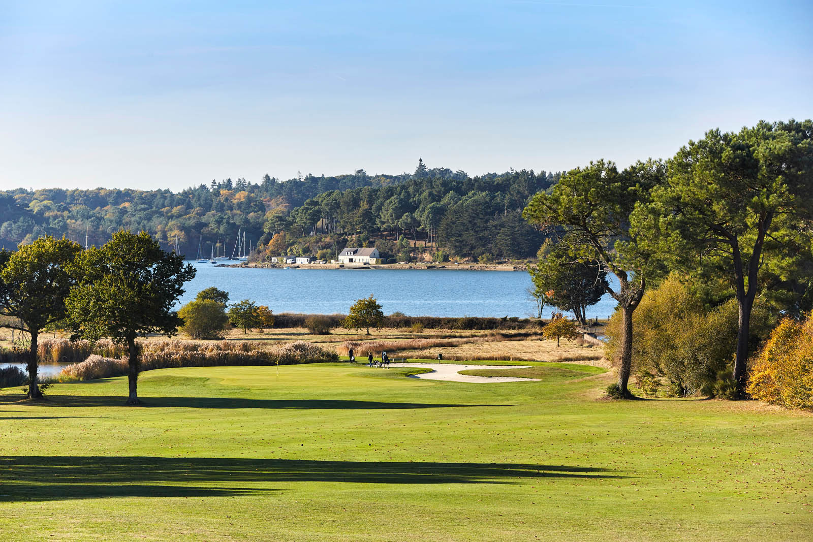 Cadre : Le parcours est situé dans un environnement paisible, avec une belle vue sur le Golfe du Morbihan et ses îles. C'est un endroit idéal pour profiter de la nature tout en jouant au golf.