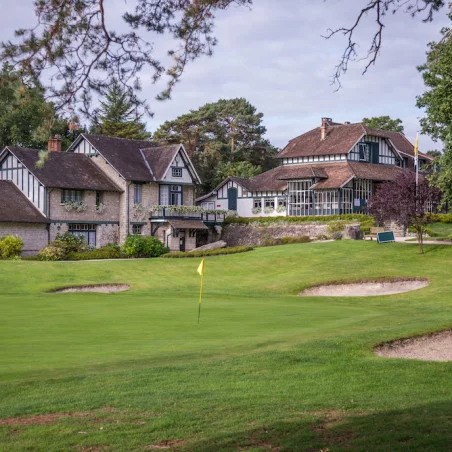 Le parcours de 18 trous vous invite à une aventure unique, où chaque fairway étroit est bordé d'arbres majestueux aux essences variées. Des pins imposants se mêlent aux bouleaux, merisiers, hêtres et chênes centenaires, formant un écrin naturel d'une beauté époustouflante. Mais ce n'est pas tout : les 103 bunkers de sable fin défendent habilement chaque trou, tandis que les taillis touffus de bruyères, lilas, fougères et genêts ajoutent une touche de charme et de complexité au parcours.