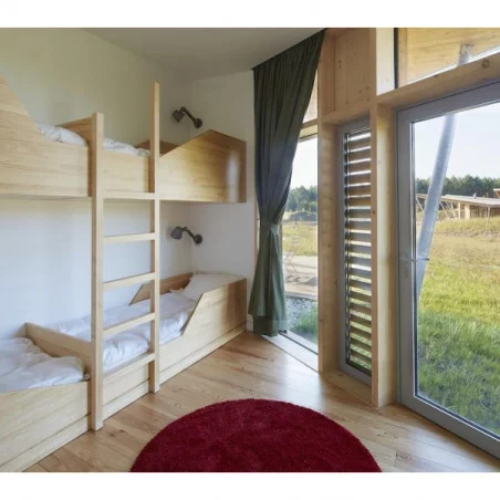 - Caractéristiques : Plus spacieuses, les suites sont idéales pour les familles ou les groupes d’amis. Elles combinent un design épuré et moderne avec des équipements haut de gamme tout en mettant l’accent sur le respect de l’environnement.