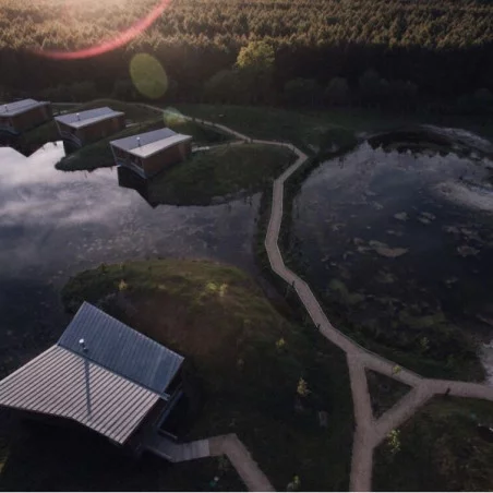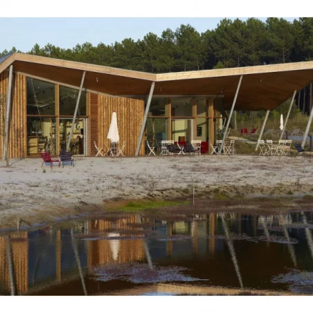 701 Route des Bruyères, Saubion - 40230 - Landes - Nouvelle-Aquitaine - FranceL'Hôtel Les Echasses Golf & Surf Eco Lodge est un établissement unique situé dans le département des Landes, à Seignosse, entre l’océan Atlantique et la forêt de pins. Ce concept innovant combine l’esprit du golf, du surf et de l’écologie, avec une approche respectueuse de l’environnement, pour offrir aux clients une expérience inoubliable en harmonie avec la nature.