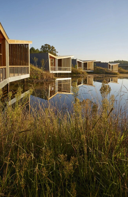 - Conception : Ces chambres sont modernes, lumineuses, et conçues pour offrir un confort optimal tout en respectant l’environnement. L’architecture privilégie l’utilisation de matériaux naturels comme le bois et la pierre, avec des baies vitrées offrant une vue imprenable sur la forêt de pins ou les jardins paysagers.