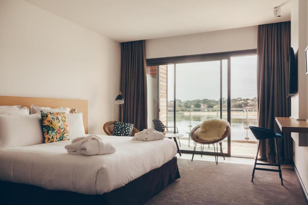 L'hôtel propose des chambres élégantes et spacieuses, décorées avec soin, offrant des équipements modernes pour un séjour agréable. Certaines chambres disposent de terrasses privées avec vue sur les jardins ou la piscine. Le style de l'hôtel est un mélange d’élégance moderne et de simplicité, mettant en valeur l’atmosphère tranquille d’Hossegor.