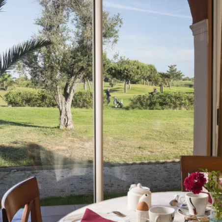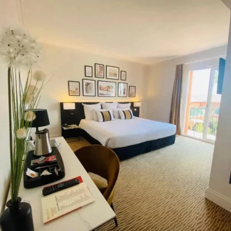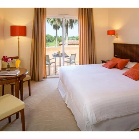 Les Chambres Vue Golf (25 m²) disposent d’une terrasse privée avec une vue imprenable sur le parcours de golf, permettant aux passionnés de profiter d’un cadre exceptionnel directement depuis leur chambre.