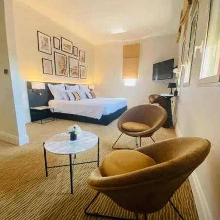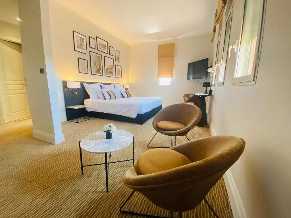 Les Junior Suites (40 m²) sont plus spacieuses et incluent un coin salon, idéal pour les séjours prolongés ou ceux recherchant plus de confort.
