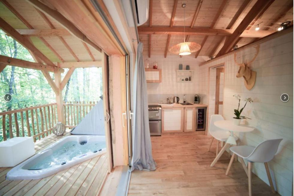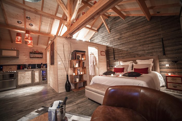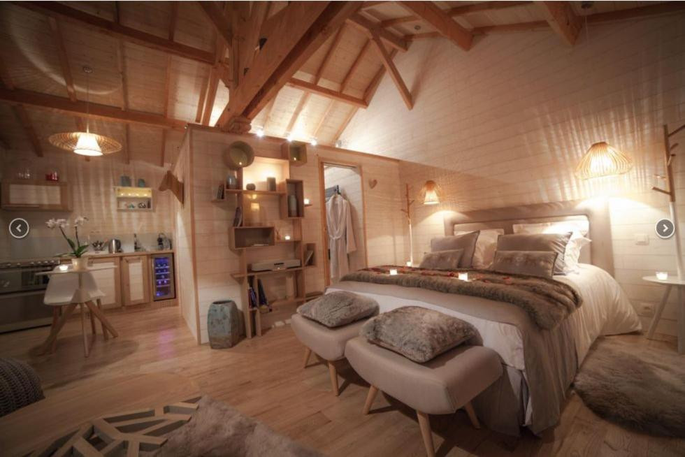 Vous serez séduits par l'ambiance chaleureuse de ce cocon pour deux, dédié à l'amour. Doté d'un lit Queen size, d'une cuisine entièrement équipée, d'un poêle à granulés, d'un écran plat, de la climatisation réversible et d'une douche à l'italienne en pierre naturelle; Sans oublier notre jacuzzi privatif sur la magnifique terrasse, offrant une vue sur la forêt, où vous pourrez vous envelopper dans de doux peignoirs épais.