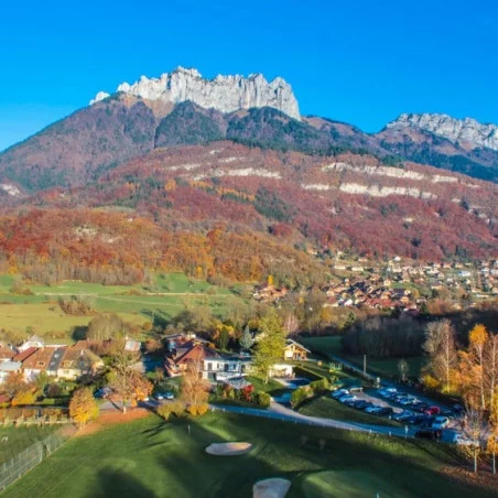 Situé à Talloires-Montmin, sur les rives du lac d’Annecy en Haute-Savoie, le Golf du Lac d’Annecy bénéficie d’un emplacement spectaculaire entre les eaux scintillantes du lac et les sommets des Alpes. Fondé en 1953 grâce à l’impulsion de personnalités locales passionnées, ce golf emblématique se niche à 600 mètres d’altitude, dans un environnement naturel d’exception. Offrant des panoramas saisissants sur la baie de Talloires, le château de Menthon-Saint-Bernard et les montagnes environnantes, il conjugue beauté, calme et raffinement.