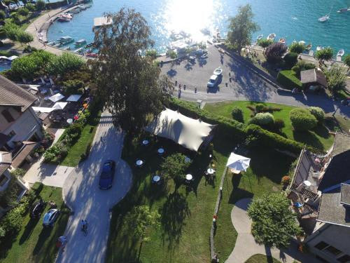 Le Golf du Lac d'Annecy est à proximité pour les golfeurs. L'Abbaye de Talloires, un site historique du XIIe siècle, est également un incontournable. À Annecy, la vieille ville est un lieu parfait pour flâner, avec ses canaux et ses bâtiments colorés.