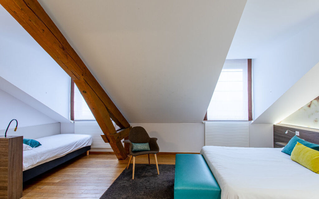 - Chambre Double Privilège : Plus spacieuse, avec deux lits simples et un canapé-lit, parfaite pour les petites familles.