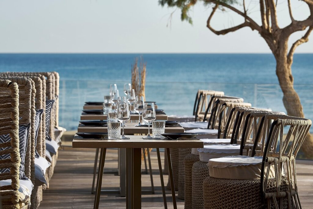 Le restaurant gastronomique de l’hôtel met à l’honneur une cuisine méditerranéenne et crétoise revisitée, élaborée à partir de produits frais et locaux.