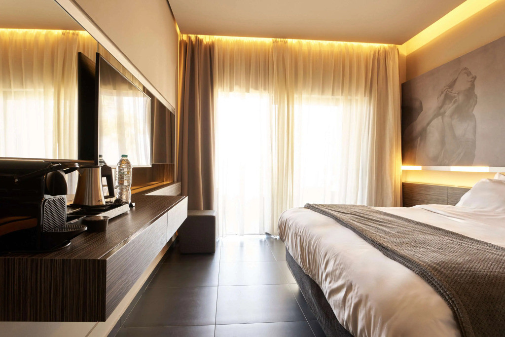 Les chambres supérieures offrent une vue sur le jardin ou la piscine, un lit king-size avec literie premium, une salle de bain avec douche à effet pluie et articles de toilette haut de gamme, un balcon ou une terrasse aménagée, une smart TV avec chaînes satellite.