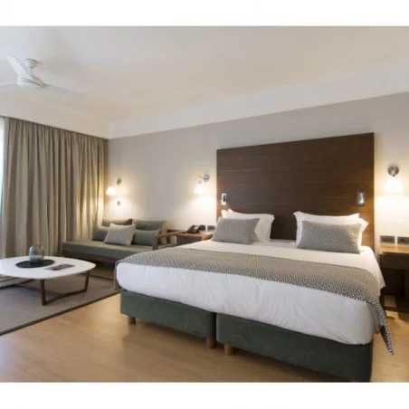 L’hôtel dispose de 23 suites de 45 m² et de 2 suites de 75 m², toutes conçues pour offrir une expérience haut de gamme. Chaque suite est équipée d’un lit king-size extra-large (210 cm x 200 cm), d’un salon avec canapé-lit, d’une salle de bain en marbre de 18 m² avec douche à l’italienne et baignoire séparée, ainsi que d’un balcon ou d’une terrasse privative avec vue spectaculaire sur le golf, la mer ou l...