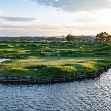 Le Links Course d'Empordà oscille entre des dunes naturelles, des lacs et des bunkers stratégiquement placés, typiques du style de von Hagge. Ce parcours met l'accent sur la gestion du terrain et la stratégie de jeu. Les éléments naturels, combinés à des obstacles bien pensés, créent une expérience de golf stimulante et visuellement saisissante. Le point culminant du Links Course est sans aucun doute son 18e trou, un chef-d'œuvre entouré d'un grand lac et se terminant sur un green impressionnant de 3000 m². Ce trou final exige précision et habileté, offrant une conclusion mémorable à chaque partie.