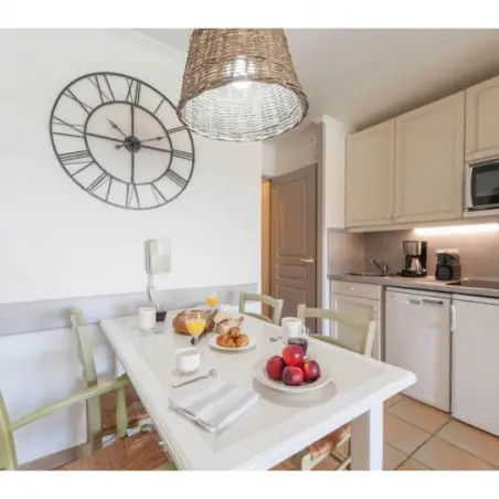 Les appartements sont spacieux et bien aménagés, offrant des options de une, deux ou trois chambres en fonction des besoins des locataires. Ils sont décorés dans un style provençal chaleureux, avec des touches modernes et confortables.