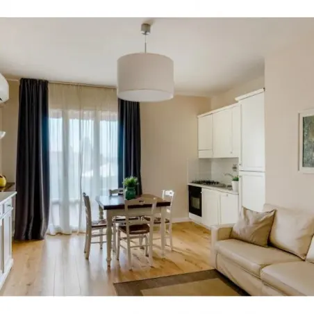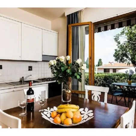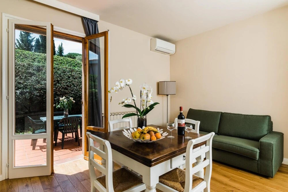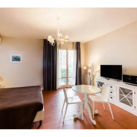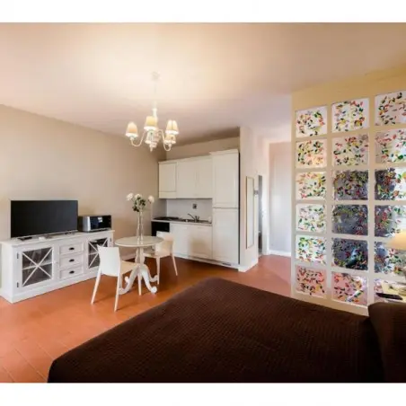 Les appartements sont décorés dans un style toscan élégant, mêlant matériaux traditionnels et équipements modernes. La lumière naturelle inonde les pièces, créant une atmosphère paisible et reposante.
