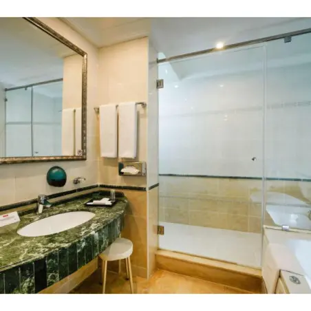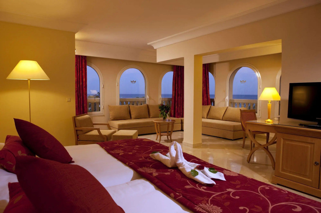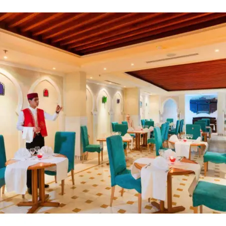 Toutes les chambres sont décorées dans un style contemporain avec une touche tunisienne, offrant une atmosphère chaleureuse et reposante. L’entretien est assuré quotidiennement avec un service de chambre disponible 24h/24 pour un confort optimal.