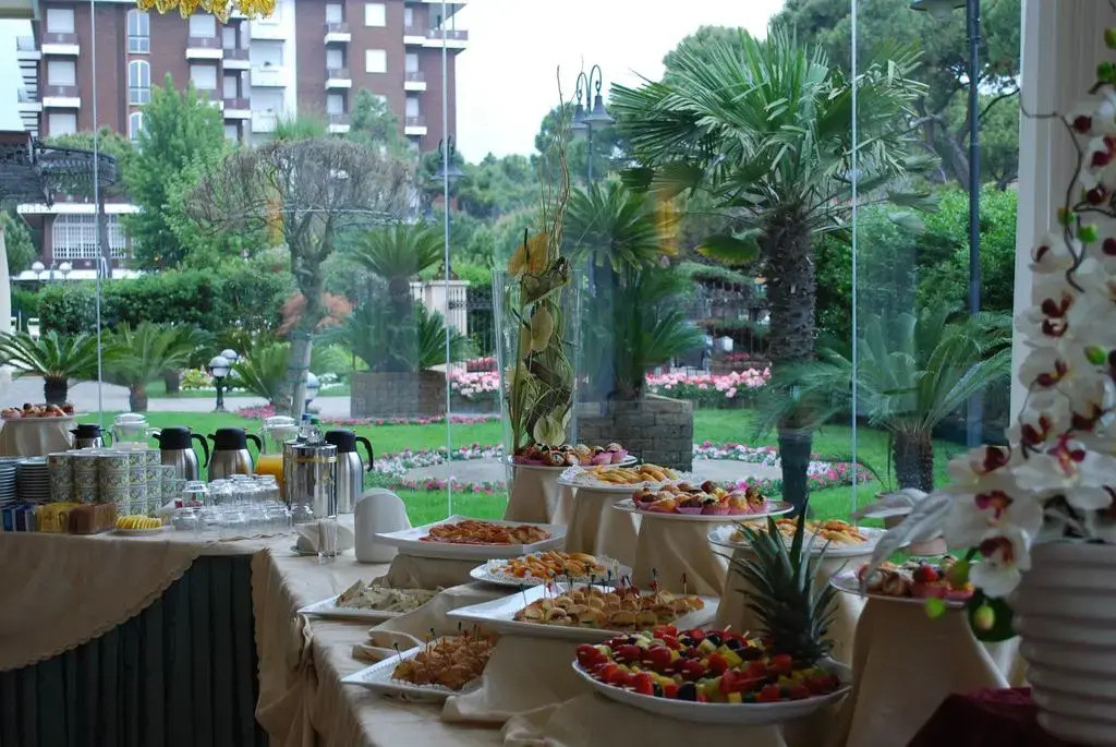 Restauration : L'hôtel dispose d'un restaurant panoramique offrant une vue imprenable sur la mer Adriatique. Les clients apprécient particulièrement le petit-déjeuner buffet, souvent servi en terrasse ou dans le jardin, avec une variété de crêpes, omelettes, pâtisseries et jus de fruits frais.