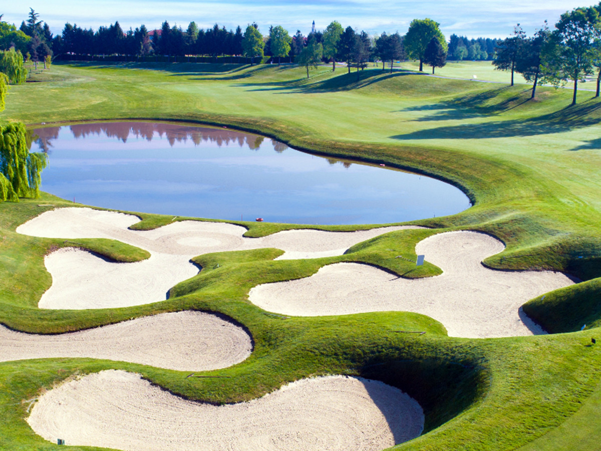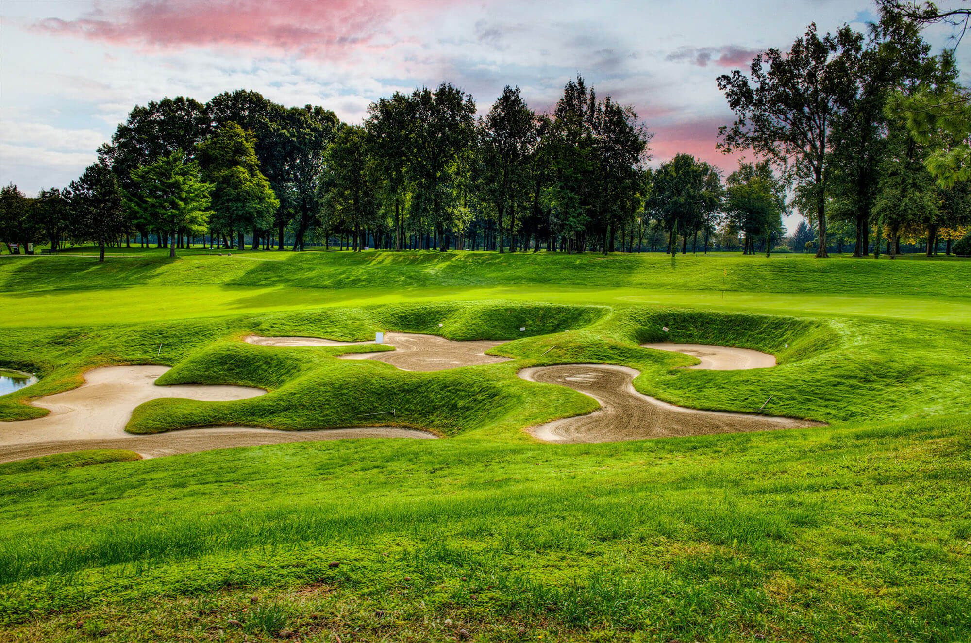 Le Robinie Golf Club, situé à proximité de Milan en Lombardie, est un parcours unique en Italie, signé par la légende Jack Nicklaus. Conçu dans le plus pur style américain, ce parcours de 18 trous, par 72, déploie 6 514 mètres de fairways généreux, ponctués de vastes bunkers creusés, de greens ondulés et de nombreux obstacles d’eau judicieusement placés. Loin d’être monotone, le tracé alterne entre trous longs exigeant de la puissance et trous plus techniques demandant de la précision, créant ainsi une expérience de jeu complète et stratégique. L’ensemble du parcours s’insère dans un cadre naturel paisible, entouré de peupliers, d’acacias et d’ondulations de terrain douces qui apportent du rythme et du relief à la partie.
