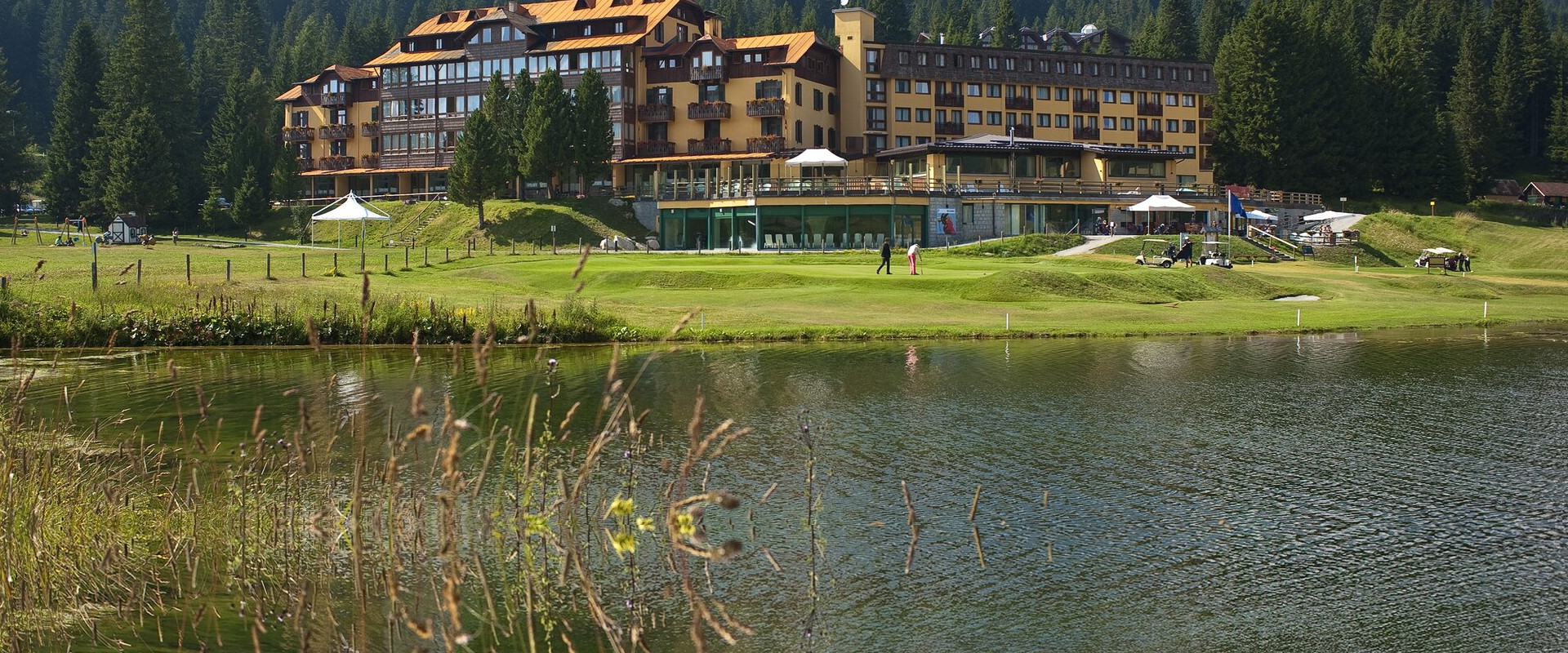 Le parcours de golf, dessiné avec soin, s'inscrit harmonieusement dans le paysage alpin. Les fairways serpentent entre des forêts de conifères, offrant des vues à couper le souffle sur les sommets enneigés des Dolomites. Chaque trou présente un défi unique, tandis que les panoramas pittoresques font de chaque coup une expérience visuelle mémorable.