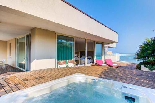 - Appartement - Vue sur Mer : Un espace exclusif avec deux chambres (1 très grand lit double et 1 grand lit double), un salon avec canapé-lit, et une vue splendide sur la mer (jusqu’à 4 personnes).