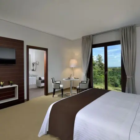 - Suite Exécutive : 1 grand lit double, salon indépendant et terrasse offrant une vue panoramique