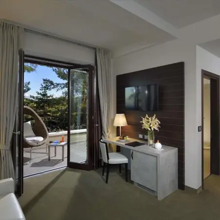 - Suite Junior : 1 grand lit double, coin salon et terrasse privée