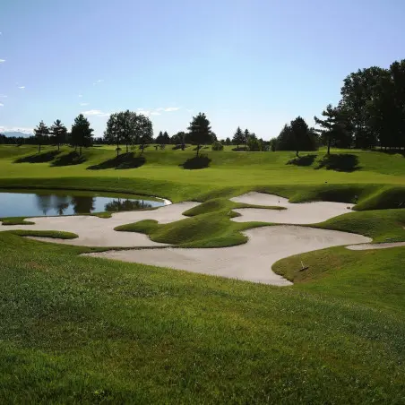 Le Robinie Golf Club, situé à proximité de Milan en Lombardie, est un parcours unique en Italie, signé par la légende Jack Nicklaus. Conçu dans le plus pur style américain, ce parcours de 18 trous, par 72, déploie 6 514 mètres de fairways généreux, ponctués de vastes bunkers creusés, de greens ondulés et de nombreux obstacles d’eau judicieusement placés. Loin d’être monotone, le tracé alterne entre trous longs exigeant de la puissance et trous plus techniques demandant de la précision, créant ainsi une expérience de jeu complète et stratégique. L’ensemble du parcours s’insère dans un cadre naturel paisible, entouré de peupliers, d’acacias et d’ondulations de terrain douces qui apportent du rythme et du relief à la partie.