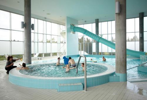 Lübker Golf Resort dispose d’un espace bien-être moderne avec spa, sauna, hammam, piscine intérieure et salle de fitness. Un centre aquatique ludique complète l’offre, avec toboggans et bassins adaptés aux familles. Le resort propose également un restaurant convivial, une terrasse extérieure, un bar et une petite boutique. Tout est conçu pour permettre aux visiteurs de profiter pleinement de leur séjour, dans une atmosphère détendue.