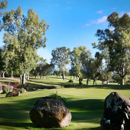 Partagé entre des ravines impressionnantes et des forêts d'eucalyptus, le parcours du Golf de Bassin Bleu demande une stratégie précise pour s'en sortir. Dès le départ, vous serez confronté à des défis techniques, notamment au 4ème trou où vous devrez franchir une ravine impressionnante. Au 14, les forêts d'eucalyptus vous obligeront à placer votre balle avec précision.