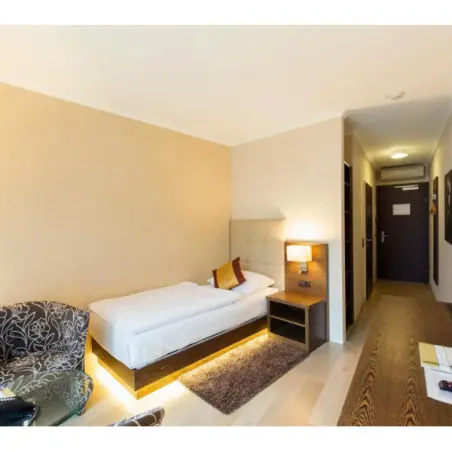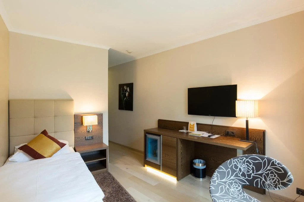 L’hôtel bénéficie d’une situation privilégiée à proximité de plusieurs parcours de golf renommés, notamment le Golf Club Fontana ou le Colony Club Gutenhof. La ville de Baden elle-même est célèbre pour ses thermes, ses parcs, son casino et son héritage musical lié à Beethoven. Vienne est accessible en une trentaine de minutes, ce qui permet d’alterner facilement entre nature, sport et culture durant le séjour.