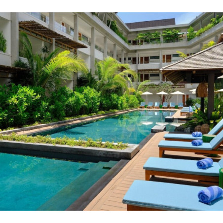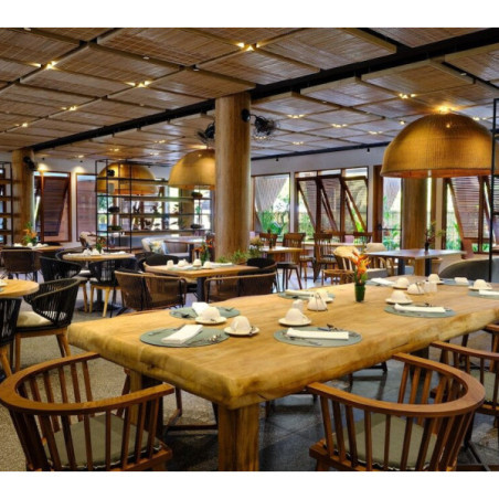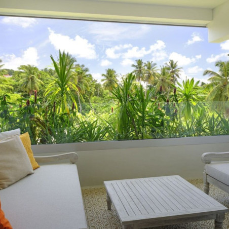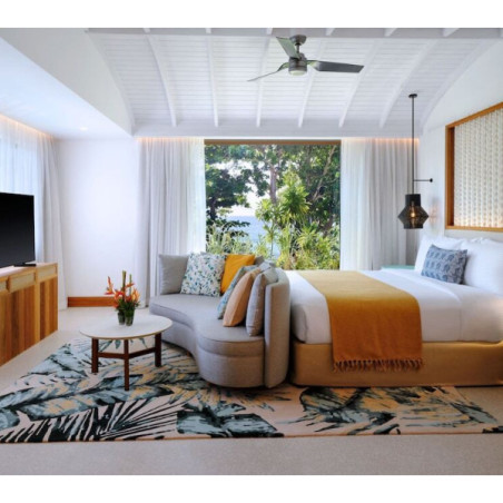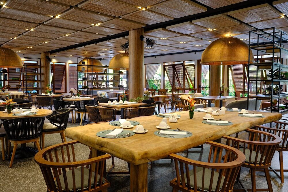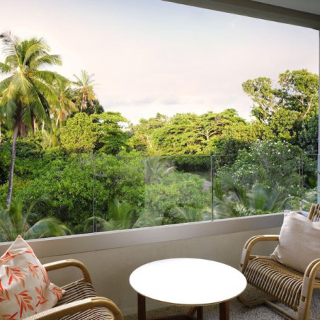 L’hôtel propose des chambres et suites décorées avec soin, mêlant matériaux naturels et touches locales. Chaque hébergement dispose d’un espace lumineux, d’un mobilier moderne et d’une atmosphère apaisante, avec des vues sur les jardins tropicaux ou la mer. Certaines suites offrent des terrasses privées pour profiter pleinement du cadre idyllique.