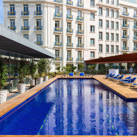Boulevard de la Croisette, 73, Cannes - 06400 - Cannes (06400) - Provence-Alpes-Côte d'Azur - FranceL’Hôtel Martinez est un palace 5 étoiles emblématique situé sur la Croisette à Cannes, dans les Alpes-Maritimes. Cet établissement allie architecture Art déco, luxe contemporain et vue imprenable sur la mer Méditerranée. Il propose 409 chambres et suites élégantes, dont certaines avec terrasse et vue sur la baie. L’hôtel est reconnu pour sa gastronomie avec le restaurant doublement étoilé La Palme d’Or, son spa Carita, sa plage privée et sa piscine extérieure.