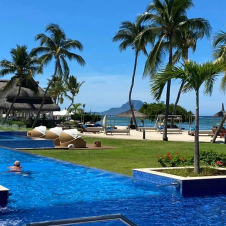 Le Sofitel Mauritius L'Impérial Resort & Spa est un hôtel de luxe situé à Flic en Flac, sur la côte ouest de l'île Maurice. Niché au cœur de neuf hectares de jardins tropicaux, il offre un cadre idyllique avec une plage de sable blanc bordée de palmiers et une vue imprenable sur l'océan Indien.