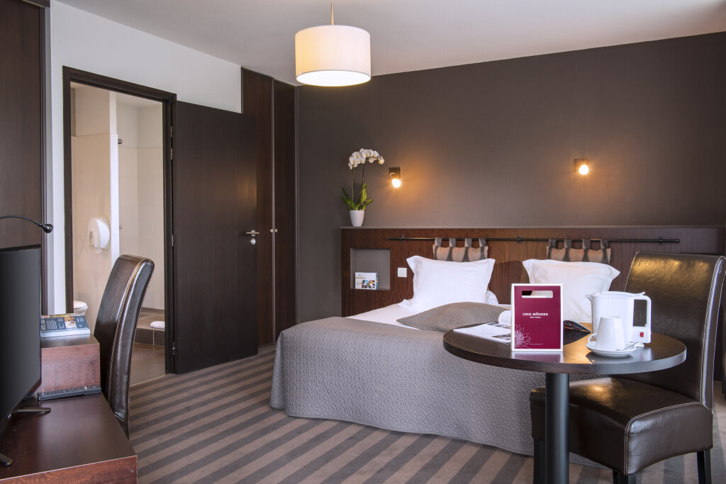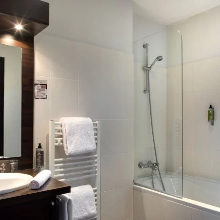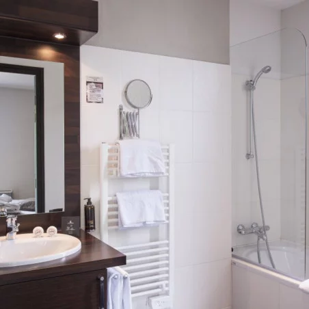 La chambre double standard est idéale pour une ou deux personnes, offrant un confort moderne avec un lit double ou des lits jumeaux, une salle de bain privative avec douche ou baignoire, télévision à écran plat, Wi-Fi gratuit, coffre-fort, climatisation et produits de toilette haut de gamme.
